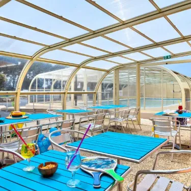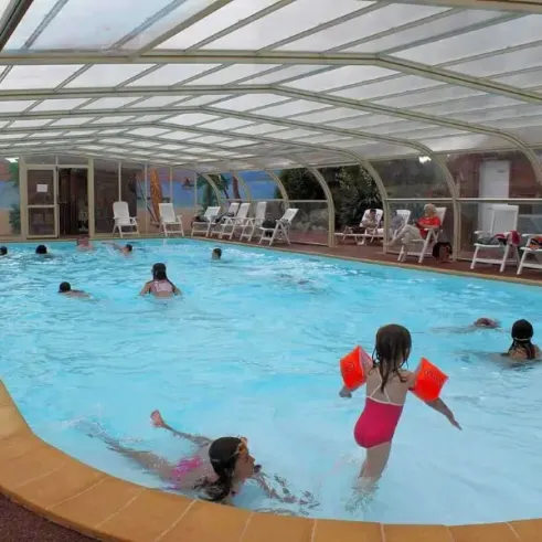 Le camping dispose d'une piscine couverte et chauffée, idéale pour se détendre en famille ou entre amis, quelle que soit la météo. Des transats sont à votre disposition pour profiter pleinement de vos moments de relaxation. Pour des instants de divertissement garantis, profitez également d’un toboggan aquatique accessible à toute la famille.