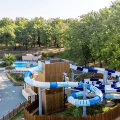 Son parc aquatique constitue l’un des points forts du camping : piscines intérieures et extérieures, piscine couverte et chauffée, solarium, aire de jeux aqualudiques pour les plus jeunes et, dès 2025, de nouveaux toboggans pour des moments de glisse et de divertissement en famille.