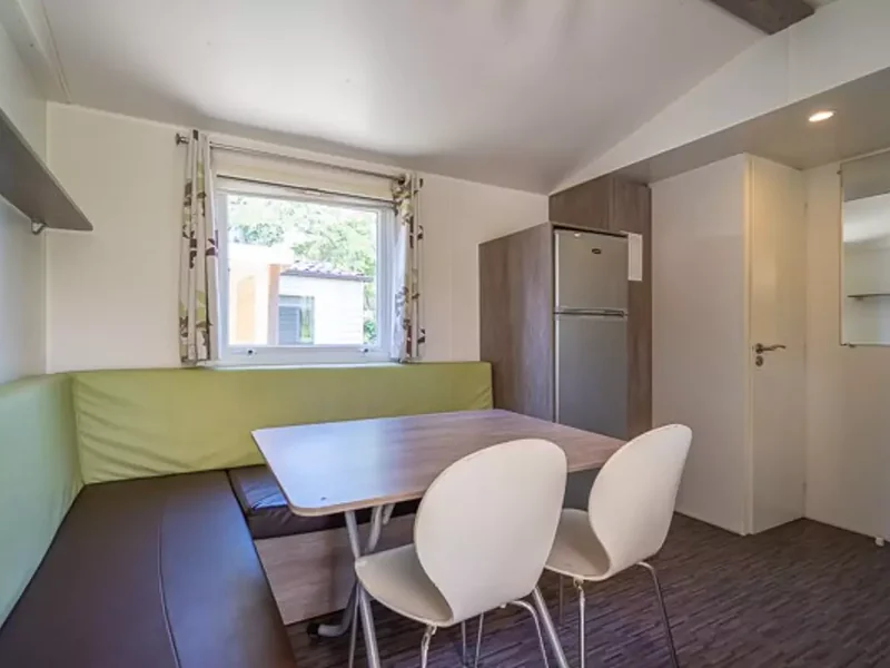 - Banquette convertible en lit de 130 x 190cm (couchage impossible pour enfants de plus de 15 ans), table et chaises, climatisation