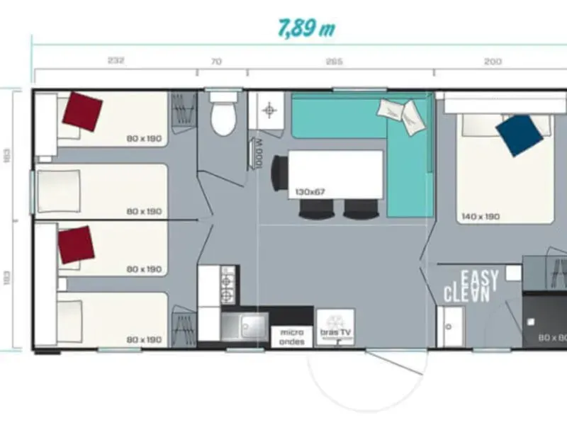 - Enfants : 2 x 2 Lits simples de 80x190cm, oreillers et couvertures fournis