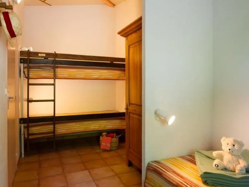 30m² de surface, chambre avec 2 lits superposés, coin salon, coin cuisine, salle d'eau avec douche, lavabo, WC séparés, terrasse…