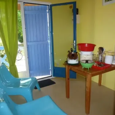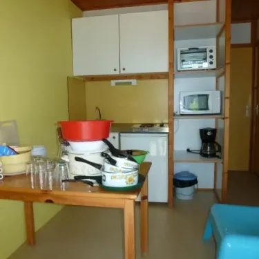 - Plaques cuisson, micro-ondes, réfrigérateur/congélateur, cafetière électrique, vaisselle et ustensiles de cuisines inclus
