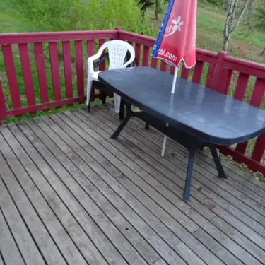 - Terrasse non-couverte, salon de jardin avec table, chaises et parasol