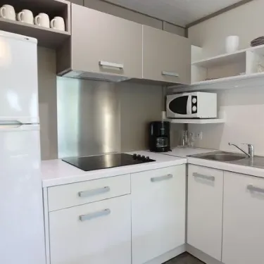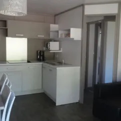 - Plaques cuisson, cafetière, micro-ondes, réfrigérateur-congélateur, lave-vaisselle, vaisselle et ustensiles de cuisines inclus