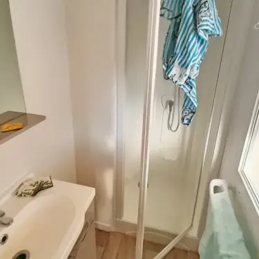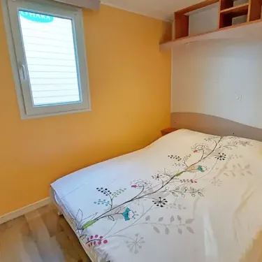 28 m² de surface, chambre avec 1 lit double, 1 chambre avec 2 lits simples, séjour convertible, coin cuisine, salle d'eau, WC séparés, terrasse extérieure semi-couverte…