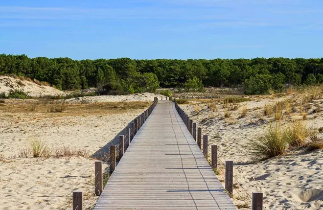 La forêt des Landes, qui borde Biscarrosse, est la deuxième plus grande forêt d'Europe. Elle offre un contraste saisissant avec les plages ensoleillées. Les sentiers forestiers invitent à des randonnées à pied ou à vélo, permettant aux visiteurs de s'immerger dans une nature luxuriante.