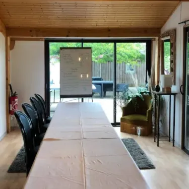 - Plaques cuisson, micro-ondes, réfrigérateur, cafetière électrique, vaisselle et ustensiles de cuisines inclus