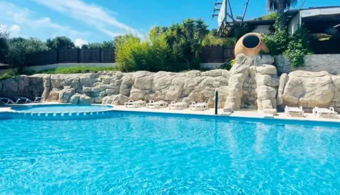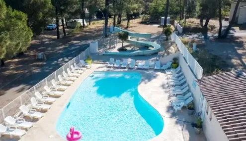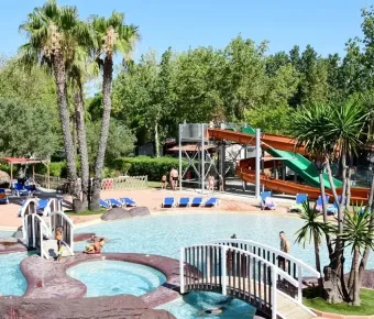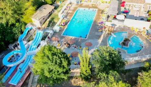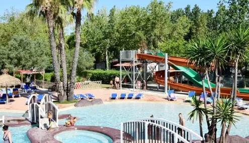 Camping Lou Pignada - piscine avec toboggan et enfants nageant
