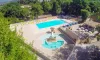Camping Aqua Viva : enfants nageant dans une piscine en plein air entourée d'arbres