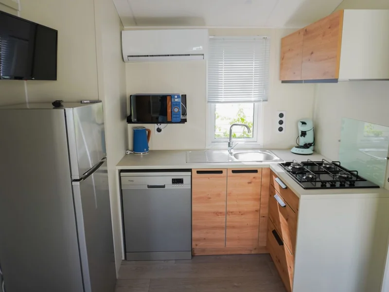 - Plaques cuisson, micro-ondes, réfrigérateur, lave-vaisselle, cafetière, vaisselle et ustensiles de cuisines inclus