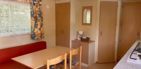 23 m2 de surface, 1 Chambre avec 1 Lit double, 1 Chambre avec 2 Lits simples, banquette d’angle convertible, coin cuisine, salle de bain avec WC, terrasse...