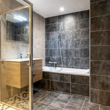 - Salle d'eau avec lavabo, bain, douche à l'italienne et WC