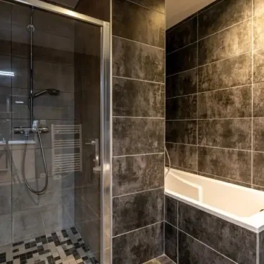 - Salle de bain, lavabo, bain, douche à l'italienne et toilette