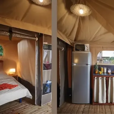 Location Bungalow toilé Nomade 2 Chambres - 5 Personnes au camping Paradis Le Ruou, Var 83