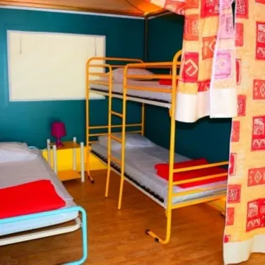 25m² de surface, 1 chambre avec 2 lits simples, 1 chambre avec 3 lits simples dont un superposé, coin cuisine,sans sanitaires, terrasse couverte.