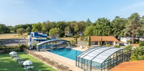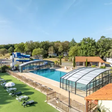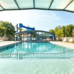 Lors de votre séjour, venez-vous rafraîchir sur l’espace aquatique du camping avec sa piscine couverte chauffée, sa pataugeoire pour les plus petits et prélassez-vous sur les transats grâce au grand solarium. Retrouvez également des toboggans !