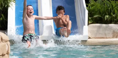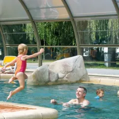 A partir de 01 avril, venez profiter de l’espace aquatique avec sa piscine couverte et chauffée avec bains à remous et sa rivière de nage à contre-courant. L’espace extérieure sera disponible du 01 juin jusqu’au 18 septembre, où vous aurez l’occasion de profiter d’une piscine extérieure chauffée avec toboggan aquatique et pataugeoire.