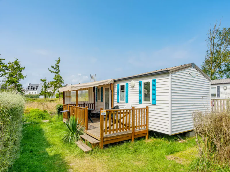 Surface de 31 m², 1 chambre avec 1 lit double (140x190), 1 chambre avec 2 lits simples (80x190), banquette convertible en lit double (enfants de 15 ans maximum), cuisine équipée, salle de bain avec douche, WC, terrasse semi-couverte, salon de jardin...