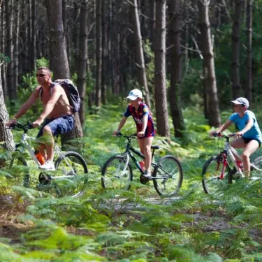 Des nombreuses pistes cyclables sont aux abords du camping et permettent de partir à la découverte des différents paysages landais. Vous aurez ainsi l'occasion de vous rendre à la plage située à seulement 1,5 km ou encore dans les villages typiques de la région comme Vieux-Boucau situés à seulement 15min.