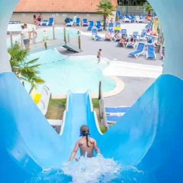 Venez-vous rafraichir et vous amuser sur l'espace aquatique totalement rénové du camping de 10H00 à 20h00 en juillet août (10h00 à 18h00 le reste de l'année) :