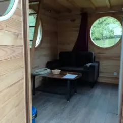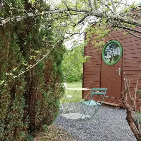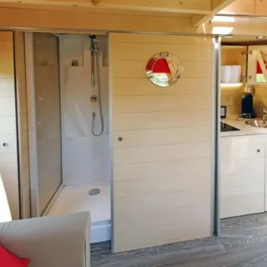 Surface de 9m², 1 chambre avec 1 lit double mezzanine (140x190), salle de bain avec douche, WC séparés, terrasse, salon de jardin, SPA...