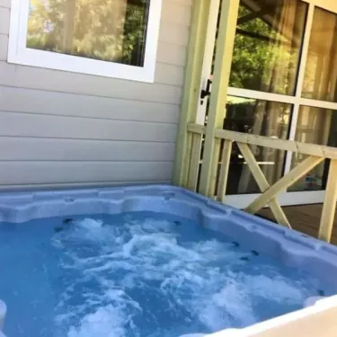 - Terrasse couverte, salon de jardin, bain à remous privatif
