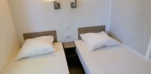 Une chambre avec un lit double, deux chambres avec deux lits simples, coin cuisine, salle de douche avec WC séparé, terrasse...