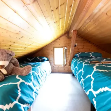 - Enfants : Un mezzanine avec 2 lits simples (accessible par une échelle de meunier)
