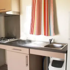 - Plaques gaz, micro-ondes, grand réfrigérateur, vaisselle et ustensiles de cuisine inclus, cafetière à capsules (Dolce Gusto)