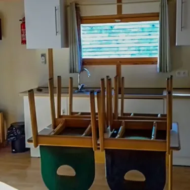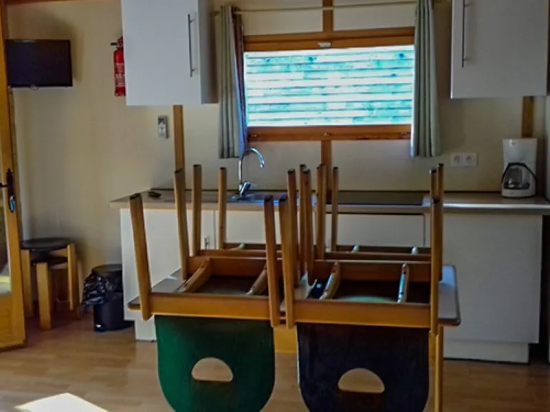 - Plaques cuisson, micro-ondes, réfrigérateur, cafetière électrique, vaisselle et ustensiles de cuisines inclus