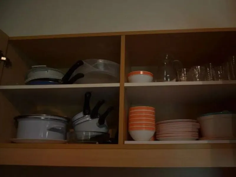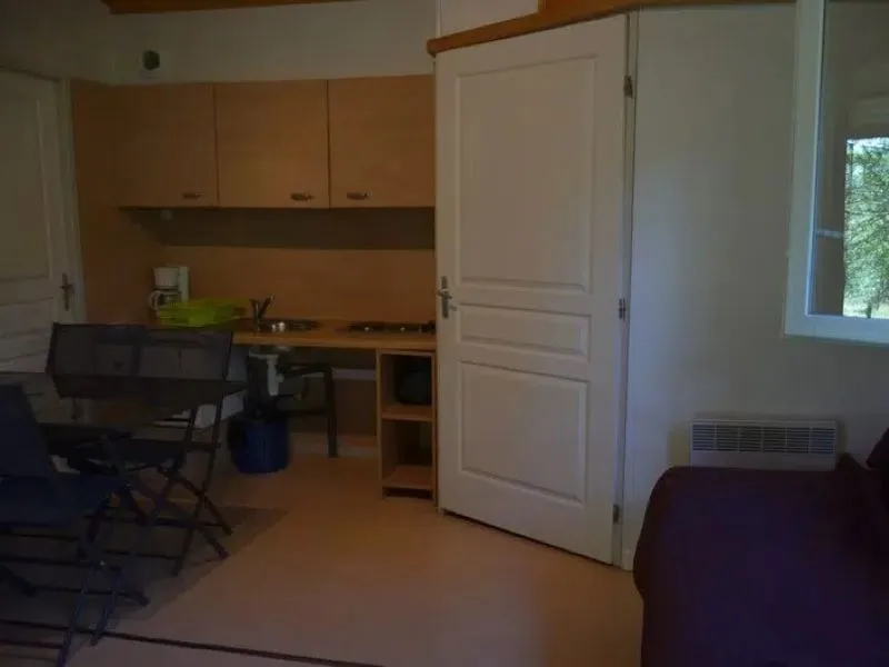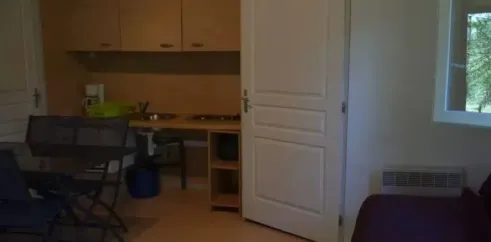 - Plaques cuisson, micro-ondes, réfrigérateur-congélateur, cafetière, vaisselle et ustensiles de cuisines inclus
