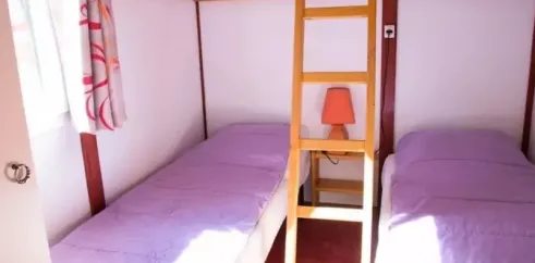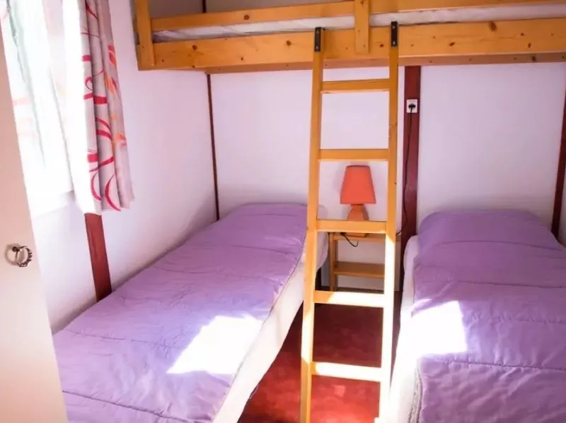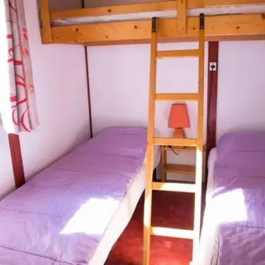 12m2 de surface, 1 Chambre avec 1 Lit double, 1 Chambre avec 3 lits simples dont 1 superposé, coin salon, coin cuisine, salle de douche avec WC, terrasse...