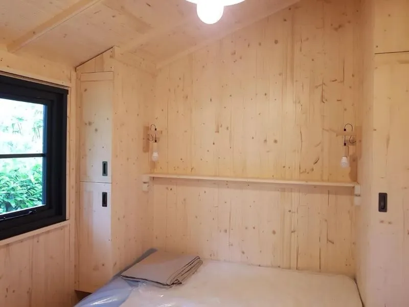 Surface de 20m², 1 chambre avec 1 lit double (160x200), cuisine équipée, salle de bain avec douche et WC, terrasse couverte, salon de jardin...