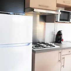 - Plaques gaz, micro-ondes, grand réfrigérateur, vaisselle et ustensiles de cuisine inclus, cafetière à capsules (Dolce Gusto)