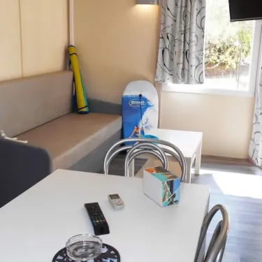 - Banquette convertible dans le salon en lit (130cm x 190cm, fait avec les coussins), table, chaises, climatisation réversible, télévision (chaînes TNT françaises), chauffage