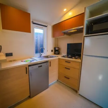 - Plaque de cuisson, micro-ondes, réfrigérateur, lave vaisselle, ustensiles de cuisine et vaisselle