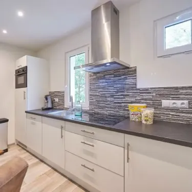 - Plaques cuisson, micro-ondes, réfrigérateur-congélateur, bouilloire, vaisselle et ustensiles de cuisines inclus