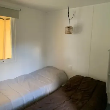 Surface de 17.6 m², 1 chambre avec 1 lit double (140x190), couverture, oreillers, salle de bain avec douche, WC séparés, terrasse couverte, salon de jardin...