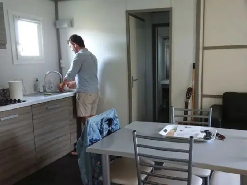 - Plaques cuisson, micro-ondes, réfrigérateur/congélateur, cafetière, vaisselle et ustensiles de cuisines inclus
