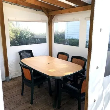 - Terrasse couverte et fermée sur les côtés avec salon de jardin