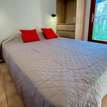 30m² de surface, une chambre avec 1 lit double, une chambre avec 2 lits simples (les deux lits peuvent se rapprocher pour faire un lit double), coin salon, coin cuisine, salle d'eau avec douche, lavabo, WC séparés, terrasse…