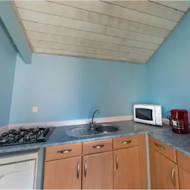 - Plaques cuisson, micro-ondes, réfrigérateur-congélateur, lave-vaisselle, vaisselle et ustensiles de cuisines inclus