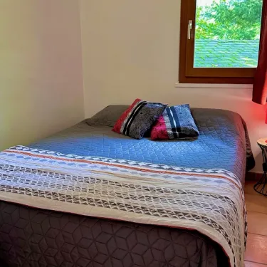 30m² de surface, une chambre avec 1 lit double, une chambre avec 1 lit superposé, coin salon, coin cuisine, salle d'eau avec douche, lavabo, WC séparés, terrasse…