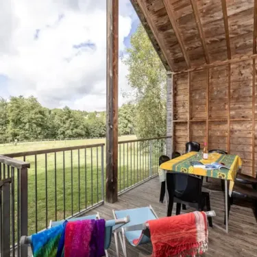 - Terrasse couverte, bain finlandais, table et chaises de jardin