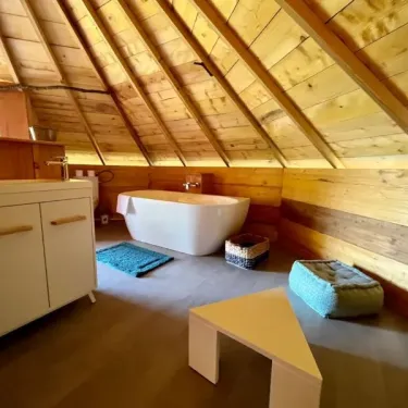 - Salle d'eau avec lavabo, baignoire et WC