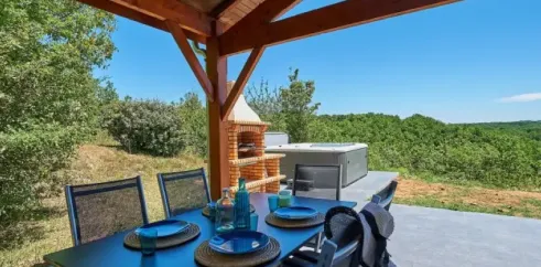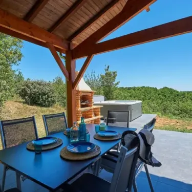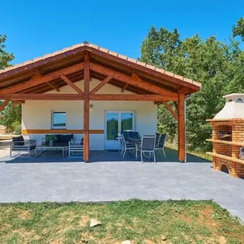 - Terrasse couverte avec salon de jardin, deux chaises longues