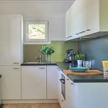 - Plaques cuisson, micro-ondes, réfrigérateur-congélateur, lave-vaisselle, cafetière, bouilloire, vaisselle et ustensiles de cuisines inclus