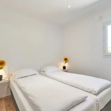 Surface de 70 m², 2 chambres avec deux lits simples, linge de lit, salle d'eau avec lavabo, douche et WC, terrasse couverte avec salon de jardin, deux chaises longues...