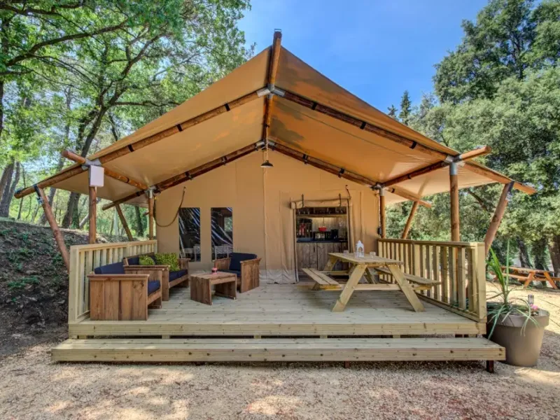 Location Lodge 2 Chambres TV - 4 Pers. au camping la Pinède en Provence, Vaucluse 84