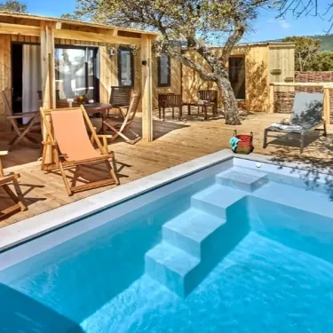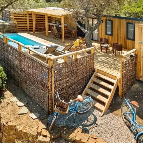 Location Lodge Luxe Riviera Vue Mer 2 Chambres - 4 Personnes au camping au Paradis des Campeurs, Var 83